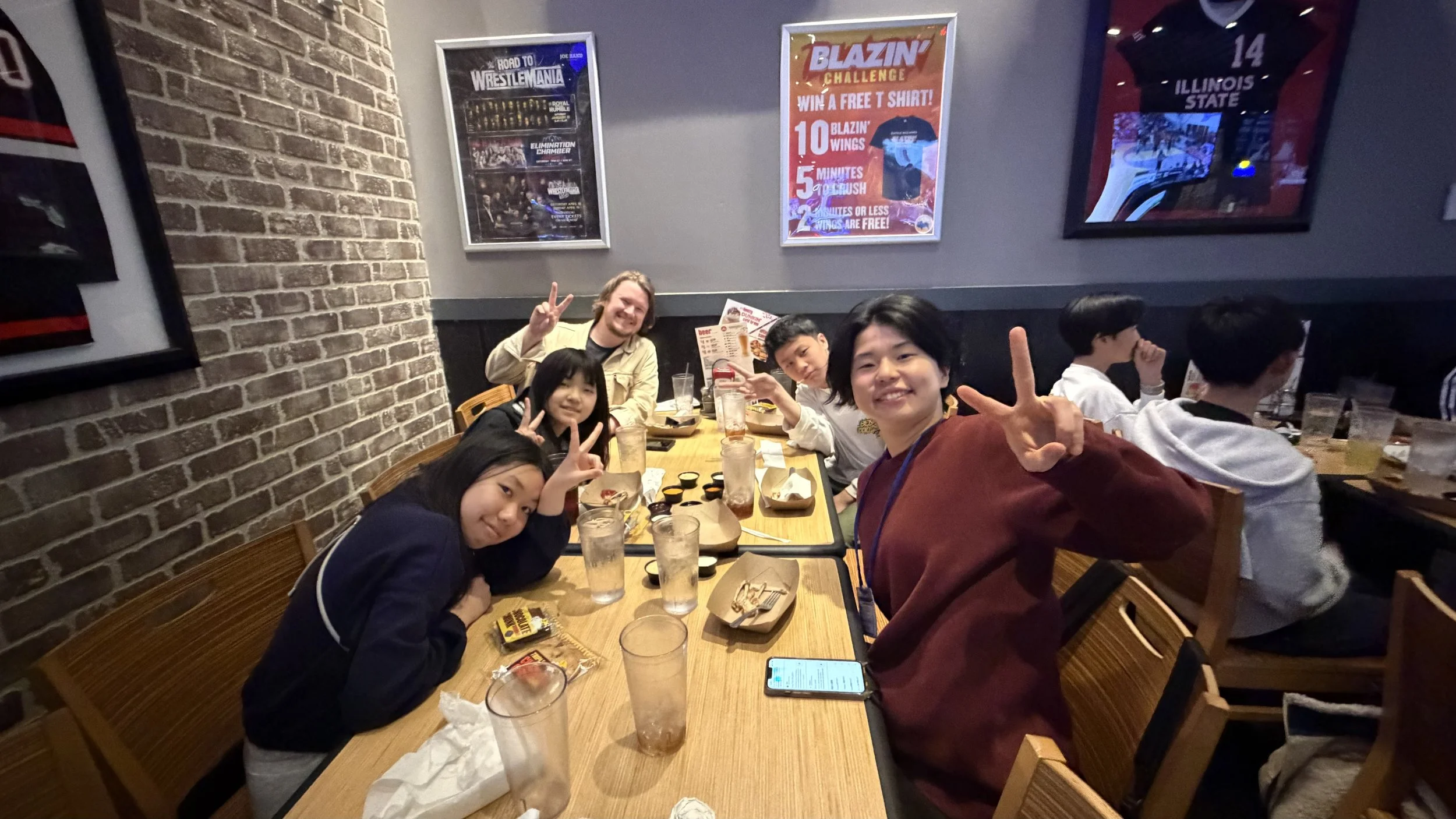 After a morning of walking the halls, it was time for a high-energy lunch at Buffalo Wild Wings. This was a quintessential American "sports bar" experience! The ambassadors enjoyed a variety of wing flavors and loved the atmosphere—complete with wall-to-wall sports and a lively midday crowd. It’s safe to say they found some new favorite sauces today!