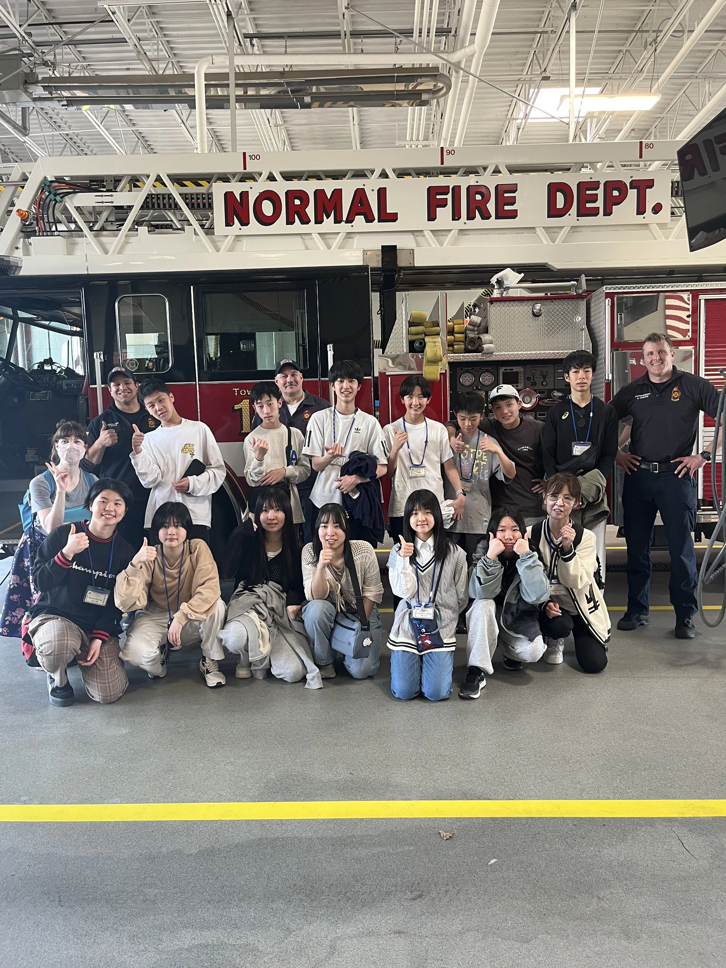 The morning started with a visit from the McLean County Sheriff’s Department. The students had the chance to meet a Deputy, sit inside a squad car, and learn all about how law enforcement works in the U.S. Later in the day, the excitement continued with a tour of a Normal Fire Station, where they got an up-close look at the massive engines and the life-saving gear used by our local firefighters.